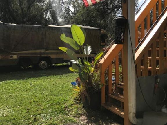 Lovely ranch with wrapped front porch, Ashpalt circle drive, 4 car detached garage, central heat & air, entire yard sprinkler system, partial yard zero scape with red rock, new septic and drainfield with warning system In front yard, old drainfield and septic in backyard, camera alarm system, tile floor in front room, laminate in the rest of the house, solar hot water heater and attic fans, fenced property, front electric automatic gate, two gates in real property,Crown molding in several rooms, coffer ceiling in living room, ceiling fans in all bedrooms. Screened lanai with oversize pool, shower and lanai, Hot Tub and Lanai, upstairs apartment above detached to car garage.