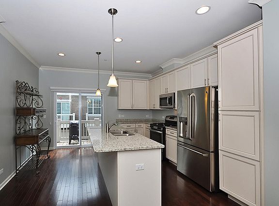 Gorgeous townhouse is less than one year old & better than new!! Loaded with beautiful upgrades, including hardwood floors, granite tops, custom cabinetry, high end stainless steel appliances, luxurious bathrooms, oak & wrought iron railings, stone fireplace surround & lots more. Very open floor plan, with a large island/breakfast bar, balcony, main floor laundry plus family room on the lower level. Super location that's very convenient to Metra!