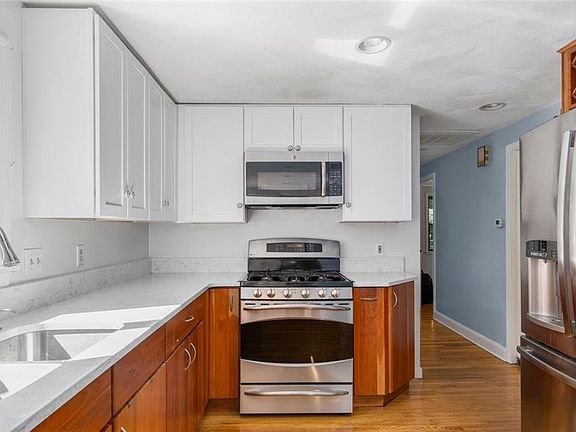 Discover the perfect blend of modern comfort and classic charm with this inviting one-level ranch located in the highly sought-after Hill and Harbour neighborhood of East Greenwich. This 2-bedroom, 1-bathroom home offers a welcoming open-concept layout, ideal for effortless living and entertaining. The addition of a heated sun room and separate dining room offer flexible spaces to use as you wish. Step inside to find a bright and airy living space with hardwood floors throughout, featuring a cozy fireplace that adds warmth and character. The newly renovated kitchen has quartz counters and stainless appliances and flows seamlessly to the living room. The bathroom was also renovated with a beautiful large tiled shower. Give this house a fresh coat of interior paint and it will shine! Central AC, 4 year old roof, replacement windows. Below is a nice large basement and attached garage. Outside the large deck overlooks your huge private yard—a fantastic setting for outdoor entertainment and relaxation. It includes raised garden beds, fruit trees, and a large custom-built shed. Plus, the property is just a short walk to the charming East Greenwich town center, where you can explore a variety of shops and restaurants, including waterfront dining and marinas. This Hill and Harbour ranch combines the best of both worlds: a peaceful retreat with easy access to vibrant community amenities. Don’t miss your chance to make this exceptional home yours—schedule a visit today!