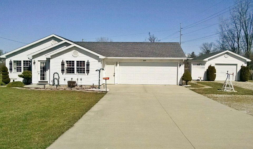 What a find! Beautifully kept 3 bedroom, 2 bath home next to Sunset park and just across the street from the new East Noble middle school. Open concept with large living room, expansive kitchen with a very long kitchen island & dining area. All bedrooms are very nice size including the master suite with a walk-in closet, jacuzzi tub and twin vanities. The roominess of this home is enhanced by cathedral & vaulted ceilings and skylights in both bathrooms. Oversized 2 car attached garage with 18' wide door, plus a heated detached 1-1/2 car garage for vehicles and storage. Large backyard, fenced patio area to enjoy those summer days! Over 1700 sq. ft. of living space to enjoy! HMS warranty included.