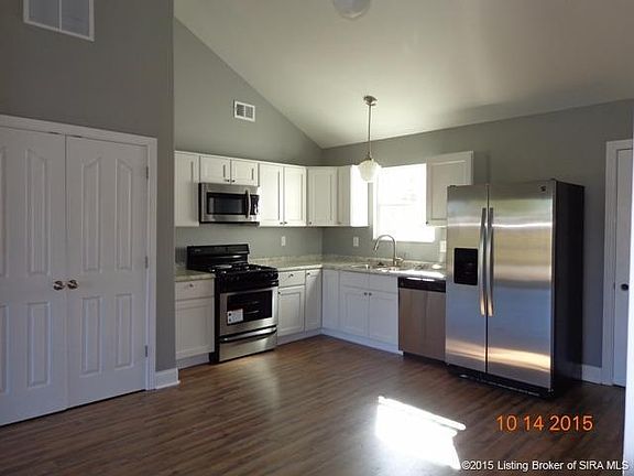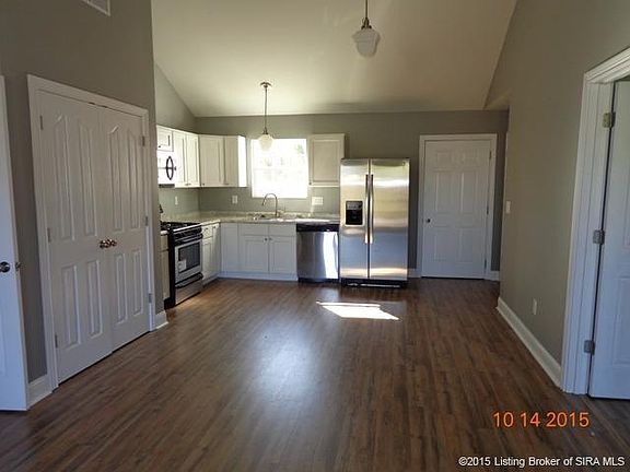 Brand NEW!! Awesome home spacious floor plan. Possible 100% financing with rural housing or Indiana Housing. Cute 3 bedroom 2 full baths and 2 car attached garage. Open and spit floor plan. Appliances included will have the stainless steel look dishwasher, range, microwave and refrigerator. Double vanities in master bath and large walk-in closet. Vaulted ceiling in great room. High efficiency hvac system. Only minutes from I-65 Henryville or Scottsburg Exits. Call today for your personal showing. Did I say super CUTE? Really is so take a peek.
