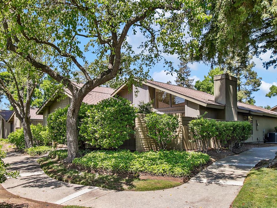 In a prime location in East Ranch, this coveted one story, freestanding atrium model has the added convenience of an attached 2 car garage. An excellent interior location in the center of the development far from busy roads and the unique elevated lot provides enhanced privacy. A gated entrance leads to two private patios. Entry foyer and center hallway unite this home's floor plan design with views of the garden atrium and patios. Large north and south facing windows provide the the advantages of even natural light and energy savings. The spacious living room features a high vaulted beamed ceiling; brick fireplace framed by built-in bookcases and all superbly bathed in natural light with a wall of glass and high clerestory window. Enjoy a separate spacious separate dining room with garden atrium views and convenient wet bar. The primary bedroom and secondary bedrooms are on on opposite sides of the house adding an element of privacy. The generous primary bedroom suite includes garden atrium views, an updated bath room plus large walk-in closet. Home improvements and recent updating make this home a great find!