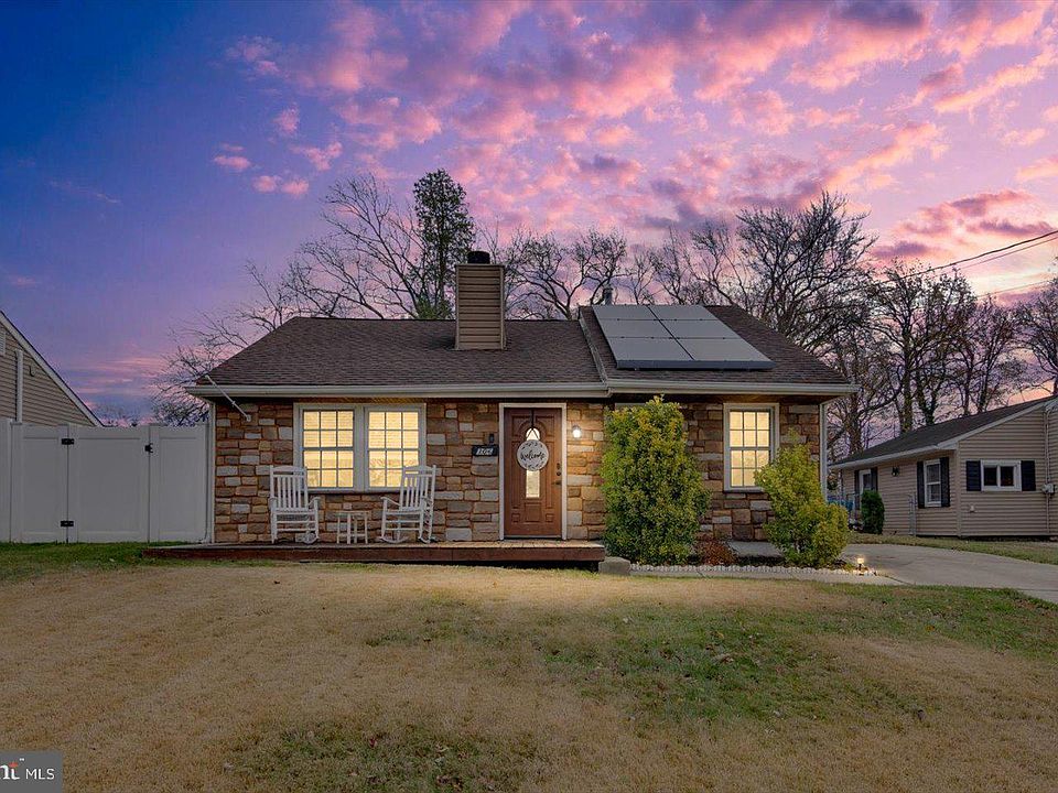 This one is not your average rancher! Step inside and be wowed by the open-concept layout featuring a spacious living room with soaring ceilings, stunning woodwork, and charming exposed beams. The living area flows seamlessly into a large, well-appointed kitchen with a breakfast bar, tile flooring, stainless steel appliances, and plenty of cabinetry and countertop space—perfect for everyday convenience and entertaining. Off the kitchen, you’ll find a versatile bonus room with French doors, a newer half bath, and stylish shiplap accents—ideal for gatherings, a home office, or a playroom. Both bedrooms are beautifully updated, offering generous space and comfort. The primary bedroom also includes a unique loft area—great for storage or a cozy retreat. Enjoy outdoor living in the fully fenced backyard, offering privacy and room to relax. Thoughtful stone and wood details add to the home’s distinctive charm. Tucked away on a quiet dead-end street, just a short walk to the park, and minutes from Route 38 and Route 73 for easy commuting.