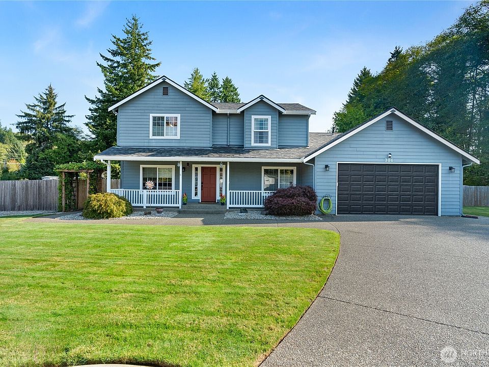 Set at the end of a quiet cul-de-sac, this 3-bedroom home with office offers 2,271 sq ft of comfort and recent updates. The kitchen features a new stove, fridge, and microwave, while the living spaces flow out to a covered back deck, perfect for entertaining. The heat pump and furnace were replaced in 2023, and the roof replaced in 2022. Enjoy grapes, blueberries, garden beds, and a playhouse in the fully fenced, landscaped yard. Dining table, chairs, Echo Show, pellet grill, and gas grill stay with the home! Relax on the covered front porch or unwind in your spacious primary suite with walk-in closet and private bath. Two-car attached garage and pantry add convenience. This is the total package, check it out today!