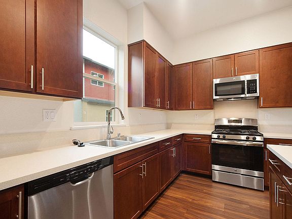 This home was built in 2017 and is conveniently located just steps from the Colma BART station. Get to downtown San Francisco via BART in just over 20 minutes, or 280 freeway in just a couple minutes. You are surrounded by shopping centers for all your grocery, dining, and shopping needs. This home is spread out over 3 floors. The two car side-by-side garage and entry occupy the first floor, with kitchen, living room, and half bath on the second floor, and two large bedrooms with private bathrooms on the third floor. Third floor also has a nook area which is great for an office. Master bedroom has vaulted 12' ceilings with large windows that make the room feel bright and airy. The kitchen features beautiful espresso wood cabinetry, quartz counters, and pantry and linen closets for extra storage. Like new stainless steel refrigerator, microwave w/hood, oven range, and dishwasher included. Central heating is available on all floors with digital thermostat. Beautiful hardwood style resilient flooring throughout, except at the stairs and bedrooms which are carpeted. Washer and dryer located in garage. This home is professionally managed by a local property management company. Please email us to schedule a tour. Lease Term: 12 months Utilities: Tenant responsible for all utilities Pets: Dogs and cats accepted. Requires additional $300 pet deposit, no additional rent. Application fee: $30 per applicant
