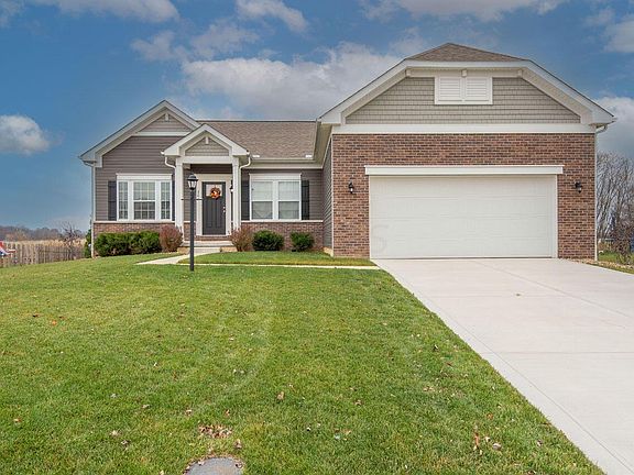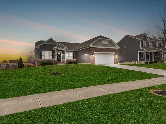 Meticulously cared for open concept ranch with a country setting! Captivating backyard views will have you on the deck in back or the paver patio looking out over the beautiful farm and fields. New cement driveway 9/22. The back of the house was built with 4 extra ft. from the plans in documents, and the owners suite side was built with 2 extra ft. The kitchen island w/ SS whirlpool appliances is open to the eating area and greatrm. Relax in the owner's suite, bath w/ double bowl sink, and fantastic custom walk in closet. Conveniently located laundry room on the first floor with added custom built in cabinets. The large basement has a bathroom rough-in & will be great for a workout room, office, playrm, etc. A water softener & sump pump battery backup have been added.