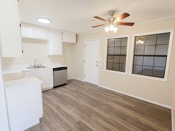 This recently updated 3 bedroom, 1 bathroom home has a fresh look inside and out. The kitchen has been updated with new countertops, vinyl flooring, and a brand-new electric stove, along with a dishwasher for added convenience. The entire home has been freshly painted and features new ceiling fans throughout, bringing both comfort and efficiency. A covered garage provides parking and storage, making this home as practical as it is inviting.