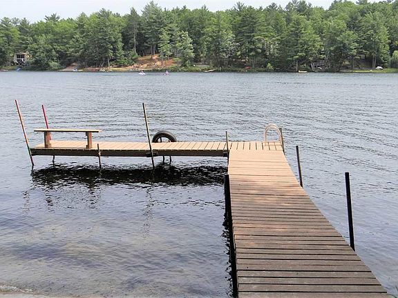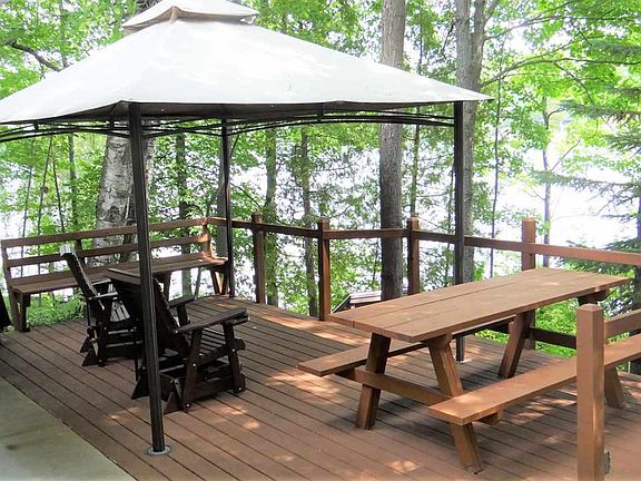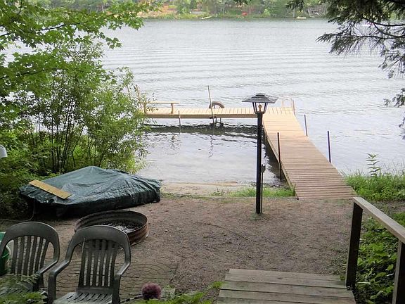 Fully furnished cottage on High Lake. No work needed here just enjoy (or lease)! 146 feet on the lake frontage together with nicely wooded property creates privacy and pleasure on the outdoor deck & patio's. Inside you'll enjoy the wall of glass for lake viewing from living room, kitchen & dining rm. 2 yr old high eff natural gas furnace, central A/C, water heater, dishwasher & range and flooring. This property is well maintained through-out. You won't want to miss out on this one.