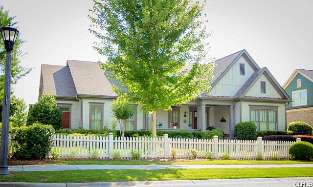 Beautiful, pristine and move-in ready in The Georgia Club. You won't believe the size of the garage on this Craftsman style home, which can accommodate 4 cars, large golf cart. Prepare to be charmed by the white picket fence in front while enjoying the park view from the rocking chair front porch w/brick surface floor. This split-bedroom ranch plan provides privacy for your guests with two large, additional bedrooms and baths upstairs. The main level includes a master suite with ensuite bath, guest bedroom/bath and separate study. The kitchen is open to a large breakfast room and Grand Room with fireplace and built-ins. The laundry room includes w/d and is conveniently located near the master suite. Enjoy the privacy provided from the screened porch in back surrounded by trees and other lush foliage. The gourmet kitchen is complete with beautiful cream, stained and glazed cabinetry, Mosaic tiled backsplash, double ovens, SS appliances, and granite counters. Plantation shutters are included on all windows. New carpet in master bedroom and second bedroom on main.