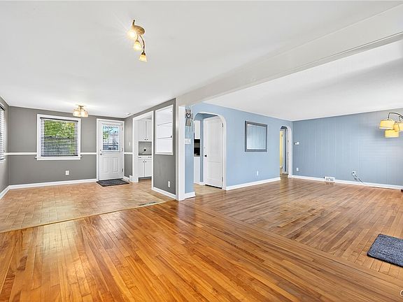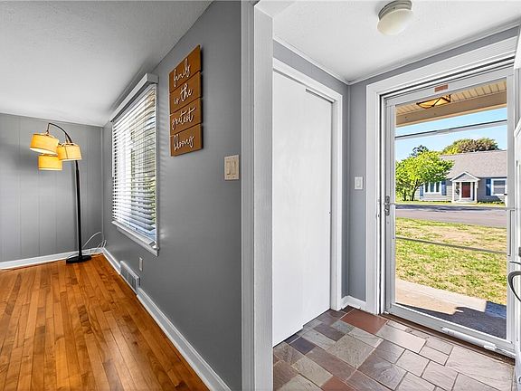 Step inside to find gleaming hardwood floors and abundant natural light streaming through the many windows. The updated kitchen boasts newer cabinets and appliances, making meal prep both stylish and functional. The thoughtful layout includes a first-floor bedroom and first-floor laundry, ideal for flexible living.