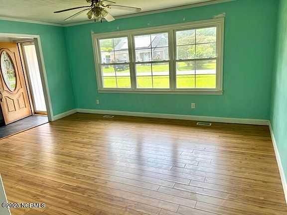 Solid brick rancher close to downtown Elizabeth City , but outside of city limits . Nice floor plan with large bedrooms & closets, Spacious backyard with privacy. Ample parking w/ attached 1 car garage and carport. Lots of big ticket item improvements! 30 yr Roof &, HVAC approx 4 yrs old , Vapor barrier 1.5 yr old New water heater! Fans in all rooms, laminate flooring