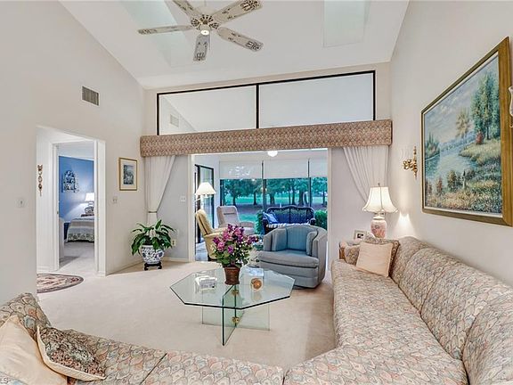 MOTIVATED SELLER, BEST PRICED VILLA! Don't miss your chance to own a Villa in Foxfire. As you walk up the sidewalk you'll enter the paver courtyard which makes this a nice & neat area to enjoy the outdoors. Once inside you'll notice this unit has had some upgrades and has been well kept and cared for. Walk thru has been opened up from the front door for easy access to the guest bedroom & bathroom. Laminate floors in Entry, Hallway and Kitchen, with carpet in living areas & bedrooms, tile in the glassed in lanai. New garage door opener 7/2018, newer roof and skylights 2017, shower doors in guest bath 2017, washer/dryer 2012, solid surface counters in kitchen (Cornerstone), new kitchen sink 6/2018, new taps in both bathroom showers 2018, A/C 2013, Fridge 2013, Home currently has a HomeTech Contract which can transfer to new the owner. Foxfire is an affordable golf and tennis community that boasts 27 holes of golf, only a 10 minute drive to downtown Naples and the Beach with shopping & restaurants close by. Plenty of activities including, tennis, swimming pools, fitness room, driving range and putting green. At the clubhouse you'll find the grill room, dining room, library & pro shop.