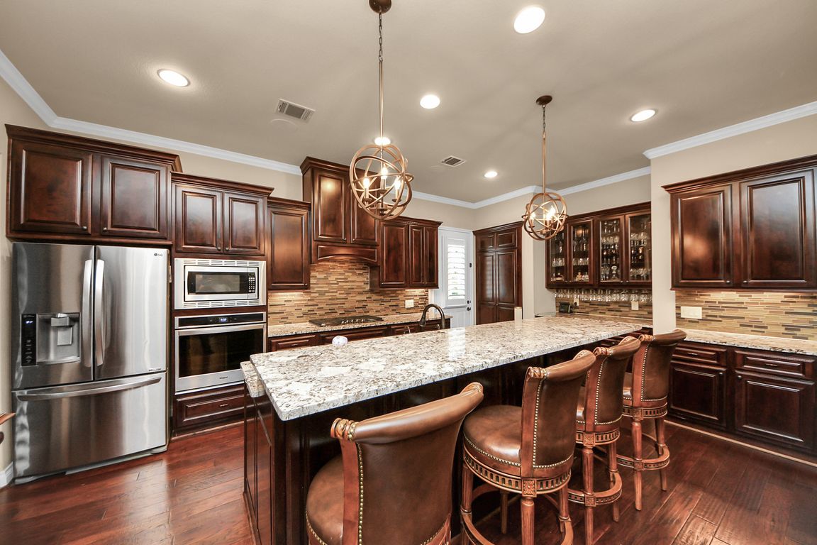 This stunning 2019 custom-built home offers 4 bedrooms, 4.5 baths, a game room & study w/ a spacious layout perfect for both relaxation & entertaining. The living area features hardwood floors & a cozy fireplace, flowing into the dining space & modern kitchen. With SS appliances, a gas cooktop, expansive cabinetry, granite countertops, & a hidden walk-in pantry, the kitchen is both functional & stylish. The primary suite boasts an electric fireplace, a custom walk-in closet, dual sinks, a glass-enclosed walk-in shower, & a soaking tub. This home offers a 22KW generator, plantation shutters, surround sound, stone int. and ext. fireplaces, in-ground spa, retractable patio screen, SS, security system, permanent Christmas lights, & so much more! The oversized lot offers a scenic backyard & includes a 3-car garage w/ a GATED driveway. Located in an amenity-rich neighborhood, just minutes from The Woodlands, i45, 99, popular shopping, dining, & major highways for quick commutes to Downtown.