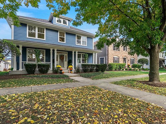 Welcome home to this gorgeous Centennial Crossing home! Enjoy your morning coffee on the front porch overlooking a beautifully manicured tree-lined street with charming vintage street lamps and plenty of community green space. This home boasts 6 Bedrooms and 3.5 Baths with a fully finished basement. Basement has a Wet Bar/Kitchenette, Bedroom and Full Bath. First Floor dedicated Office/Bedroom. Spacious Master Suite and Bath, along with generously sized bedrooms. All hardwood floors and updated light fixtures. Centennial Crossing offers beautiful parks and outdoor gathering spaces. The community is planned to feature traditional midwest architecture with front porches and sidewalks to create neighborly interaction. Direct access to the Metra North Central Line.
