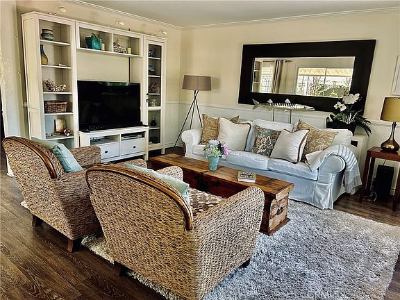 Welcome to the best kept secret in the wonderful Southern California beach town of Newport Beach. Bayside Village Mobile Home Community, a waterside community centrally located in all that Newport Beach has to offer for fractions of the cost of neighboring communities. Surrounded by lovely landscape as you walk up to this well maintained 2 bedroom 2 bath home an outside oasis awaits offering a quiet space to relax and enjoy the beautiful outdoors or entertain friends and family. Features of this little Cottage are many fine upgrades including newer flooring, newer baths, custom lighting and custom finished walls in cool and soothing colors that welcome you in. The crisp and clean kitchen is bright and light with an antique granite topped pine island perfect for seating or prepping a meal. The adjoining dining room offers a built in hutch and mirror with a fabulous chandelier above and opens up to a large inviting living room complete with custom drapery and large windows. Total square footage is 1100 square foot and the home has air conditioning. The very desirable assumable land lease is way below market rate at $2450/per month and includes water, sewer and trash and a plethora of amenities including 2 CLUBHOUSES, 2 SATE OF THE ART POOLS, 2 JACUZZIS, A PRIVATE BEACH WITH 2 GAS FIRE PITS, A GAME ROOM, AND A FITNESS CENTER, WEEKLY STREET SWEEPING AND NIGHTLY SECURITY. BOAT SLIPS, GARAGES AVAILABLE FOR RENT. WITHIN WALKING DISTANCE TO SEVERAL BEACH ATTRACTIONS, WORLD CLASS RESTAURANTS, SHOPPING INCLUDING BALBOA ISLAND, FASHION ISLAND AND THE BACK BAY. ENJOY MANY FINE ACTIVITIES AT BAYSIDE VILLAGE SUCH AS KAYAKING, PADDLE BOARDING, WATER AEROBICS AND BOATING. COME AND LIVE THE NEWPORT BEACH LIFESTYLE FOR LESS! No Land Taxes or HOA Dues. This home is located in the blue ribbon school of NMSD. New residents subject to park approval by Bayside Village Mngt. Land Lease is subject to annual increases.