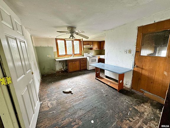 Almost 1 Acre on the East side of town with a large garage and 3 bedroom home. This is a great location just down the road from the school. Fix up the current home or build new! This property extends approximately 450ft east with wooded areas and open areas too. This home is offers a full basement, large kitchen, and has great bones! Don't wait. This is a great opportunity to create the home of your dreams!
