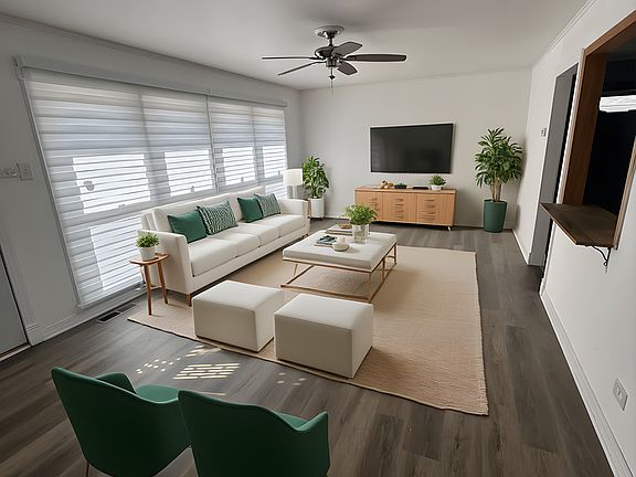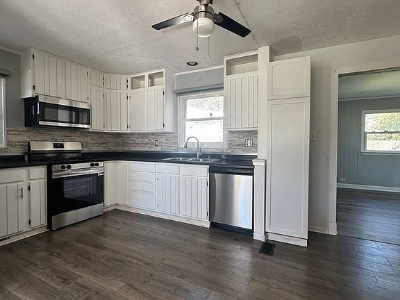 Fenced in yardDetached garageNew washer and dryerNew laminate flooringCeiling fansNew stainless steel appliances