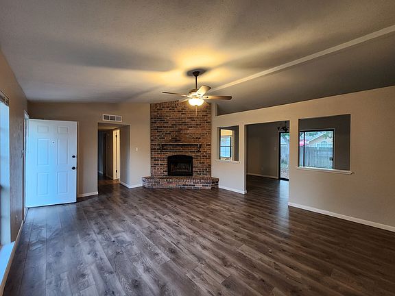 Wood burning fireplaceCeiling fansCentral heat and airPorcelain tile floorsWood-look resilient flooringVaulted ceilingsSeparate laundry room