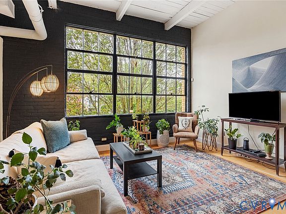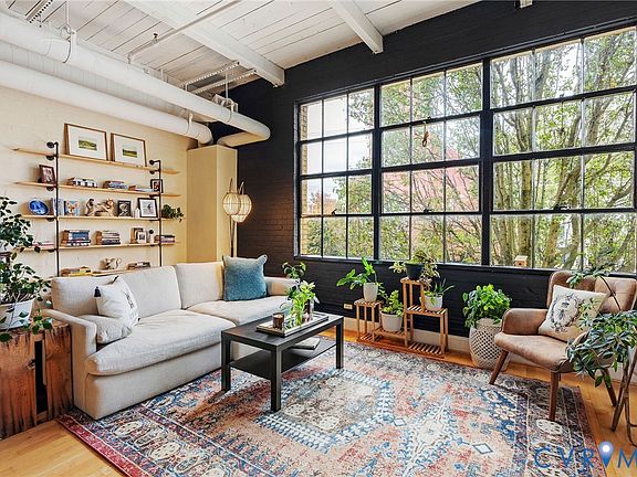 Church Hill GEM!! Rarely available residence style in historic Nolde Bakery Condominiums, with a Broad Street location. Move-in ready, this top floor 2BR with alcove is a delight to view! Convenient to MCV/VCU and downtown RVA. Open floorplan is perfect for relaxing or entertaining with huge windows that fill the space with southern light. Unique and spacious entry alcove includes remarkable clerestory windows with loft expansion, via spiral staircase. Vintage brick, high beamed ceilings and historic detailing lend character and charm to this one-of-a-kind residence. Finishes include wood floors, SS kitchen + granite counters. Spacious primary suite with wood flooring. Front load washer & dryer included. On-site amenities are numerous: fitness center with yoga /pilates areas, private theater with wet bar, controlled access entry, courtyard with grill, owner's lounge and business center with WiFi. Assigned, covered parking space near elevator, with one of the best locations in the garage! Room-size storage in basement is included. Economical maintenance fees for all that is included!! Fabulous walk-to location, just steps away from restaurants, bistros, bakeries, parks, and all the city has to offer. Of Note: Square footage does not include the loft space in tax rolls. Complex is VA Loan Approved!