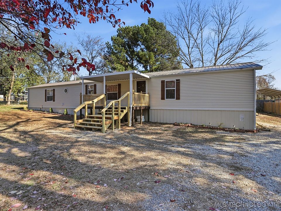 This well-maintained manufactured home offers comfort, functionality, and a prime location just minutes from Siloam Springs. Situated on almost half an acre, the property features numerous updates including new siding, new carpet, and a covered front porch that welcomes you in with charm.