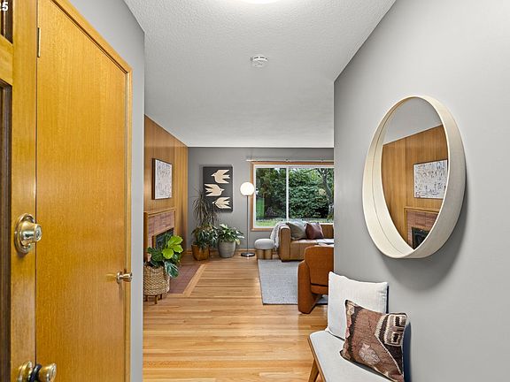 Charming 1959 ranch with beautifully preserved mid-century character, including mahogany paneling surrounding the gas fireplace and not one, but three original bathrooms! The main level features three bedrooms and two baths, including a true primary suite. The remodeled kitchen offers quartz countertops, stainless steel appliances, and a sweet bay window for all your kitchen herbs. The living room flows seamlessly into the dining area with sliding doors to a large, level backyard, perfect for gardening, play, entertaining, or quiet mornings on the private patio. While you're in the dining room, please check out the Kurt Ostervig Teak Danish Credenza from the early 1960s, which is negotiable with the house. The finished basement adds incredible flexibility with two bonus rooms, an office, full bath, and a spacious laundry area. Additional features include a fully fenced backyard, a catio and solar panels that will be paid off at closing! Fantastic location convenient to I-205, Hwy 84, PDX, shopping, parks, and more. Mid-century charm, modern updates, and room to grow - this one checks all the boxes!