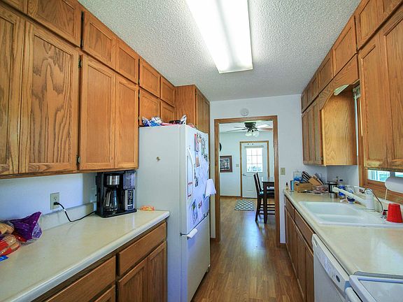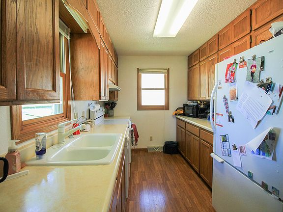 Great starter home, great retirement home, flexible space, this home can do it all! Make your dreams come true at the right price, and move in ready. This 1 and 1/2 story home has the flexibility of main floor bedroom, laundry, and walk-in shower for easy use, and either a bedroom as it's being used now, or a family room as a bonus! Two more bedrooms upstairs ensure plenty of space for everyone, one room even has a beautiful balcony to enjoy! When it's too hot outside, you are all set with central air and supplemental window units so everyone stays comfortable. The basement has another shower and room to finish more space to play, or simply use as storage. Two stalls in the garage with one facing the alley and one facing the street. Larger than it looks, both inside and out, this yard goes past the old road tracks for a total of .29 acres! Just a couple blocks from schools, the grocery store, and main street this home has a quiet location with prime access. Kitchen appliances, washer, dryer are all included to get you started right away.