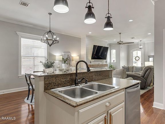 This stunning 3-bedroom, 2-bath home is move-in ready and beautifully maintained! From the floors to the flower beds, every detail reflects care and quality. Designed with accessibility in mind, it meets ADA guidelines with 36' wide doors and convenient ramp access through the garage.Elegant wood laminate floors flow seamlessly throughout, complementing modern light fixtures, custom sliding barn doors, and tasteful chandeliers in the master bath. The spacious master suite features an oversized soaking tub, perfect for relaxation.The living area is highlighted by a shiplap electric fireplace, designed to accommodate up to an 80' TV--ideal for entertaining. The oversized garage easily fits a 3/4-ton truck and is a dream workspace with epoxy-coated floors, built-in storage, dual workbenches, and wall cabinets.Outdoor living is equally inviting with landscaped flower beds and a cooking area already set up for a propane cooktop and refrigerator.Located just minutes from Lafayette Christian Academy, St. Leo Seton Catholic Elementary, St. Genevieve Catholic Elementary, Carencro Catholic, and Teurlings Catholic High, this home offers both comfort and convenience.Don't miss the chance to make it yours--schedule a private tour today!
