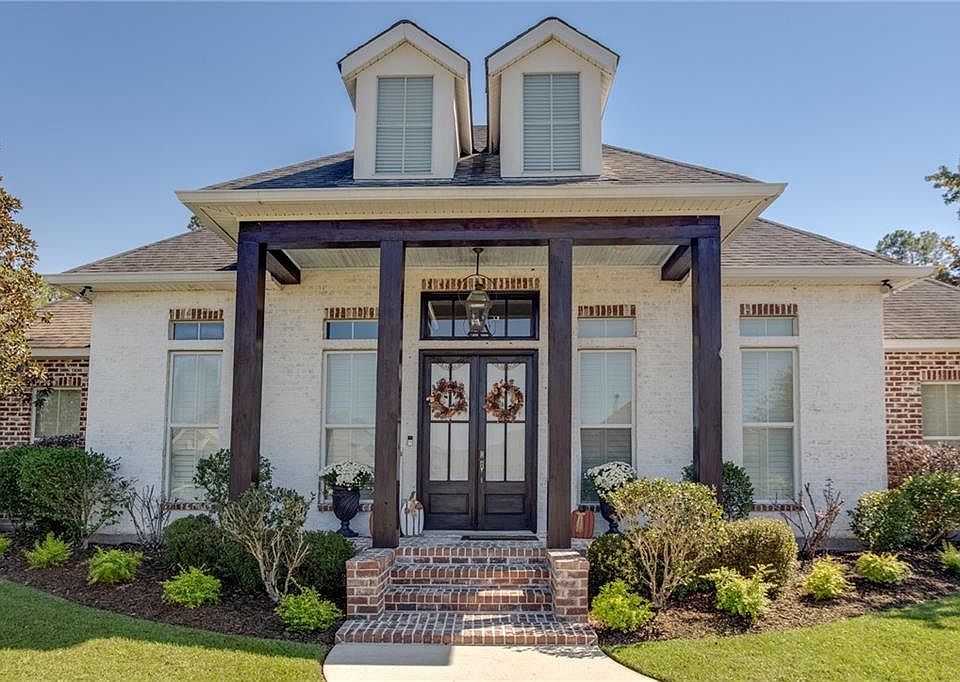 Exposed cypress beams and brick wall accents add character and charm. Inside, you'll find a gas fireplace, surround sound speakers, and the home is prewired and plumbed for a gas whole-home generator.
