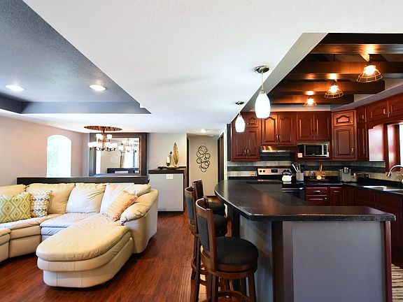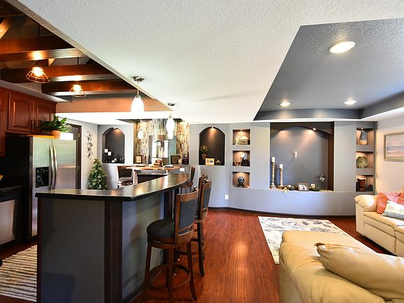 Don't miss this 3-bedroom 2-bath fully finished home! Amenities include: updated kitchen, tile backsplash, LVT flooring, SS appliances, ample cupboard space, trayed ceilings, electric fireplace, vaulted/decorative beam ceiling, fully finished lower level with gas fireplace, wood beam ceiling, bedroom and full bath. Outside enjoy a heated garage, front and backyard decks, back patio with pergola and hot tub all in a private fenced in backyard.