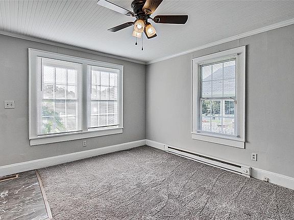 Cute renovated brick home! Updates include fresh interior paint, new light fixtures, new carpet & roof this year! Nice kitchen with new LVP flooring & washer/dryer hook-ups. Renovated bath has new cabinet & mirror & new flooring. Bonus room could be used as third bedroom has a ceiling height of less than 7' and is not counted in sq footage. 12 X 8 storage building with new roof! Super convenient location!