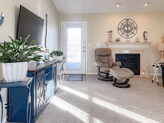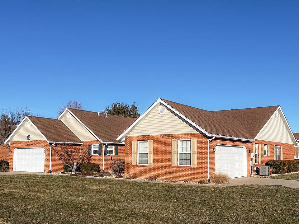 Exceptional former builder display villa! Open layout, low-maintenance features, spacious corner lot with a charming rear patio enclosed by a white vinyl fence. Inviting angled foyer adorned with gleaming hardwood floors. The Great Room is a true focal point, featuring a cathedral ceiling, elegant plant shelves, & a cozy gas log fireplace. The well-appointed kitchen is perfect for both everyday meals and entertaining, offering a breakfast bar area and showcasing ample cabinetry. The master suite is a sanctuary unto itself, boasting a double door entry, a generously sized walk-in closet, and an open vanity area designed for effortless mornings. The ensuite bathroom features a separate shower and toilet area, adding to the convenience and luxury of this space. The second bedroom is equally spacious, with a charming palladium top window. Spacious 2nd bath, side load 2 car oversized garage, and much more! Located in a convenient subdivision, with easy access to Scott Air Force Base & I64.