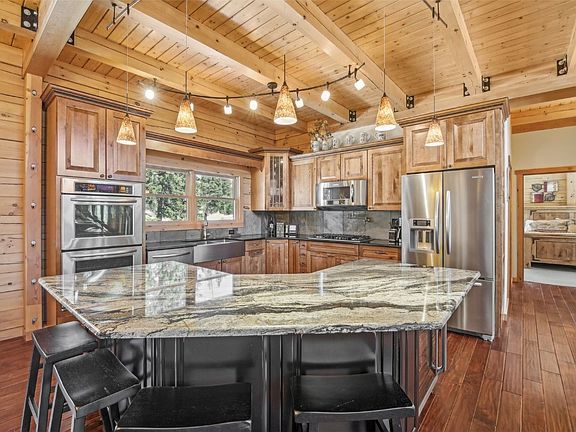 This beautifully maintained log home offers mountain charm and privacy just 20 minutes from Breckenridge. Located on a quiet cul-de-sac, it features breathtaking views, soaring ceilings, and a light-filled great room with Teak wood floors and a dramatic log staircase.