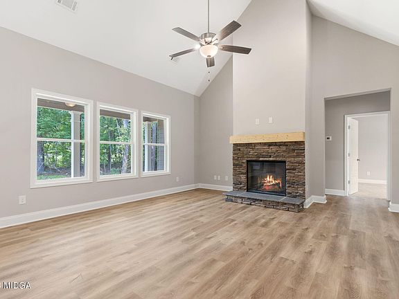 A new home featuring 4 bedrooms, plus a study. Open floor plan with island kitchen overlooking the dining room and vaulted ceiling great room with electric fireplace, plus a study on the main level. Spacious kitchen with walk in pantry. Owners private suite features a spa bath, tile shower and soaking tub, plus a 4th bedroom or bonus room upstairs