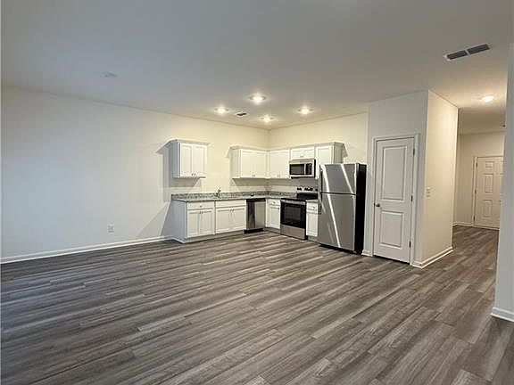 Beautiful new construction townhome, never lived in, located in the desirable Rivington Walk community. This 3-bedroom, 2.5-bath home features an open-concept main level with a spacious family room and a bright white kitchen with granite countertops, updated cabinetry, pantry, and stainless steel appliances. The private owner's suite includes a walk-in closet and en-suite bathroom. Energy-efficient design and a thoughtful layout throughout. Enjoy a peaceful community with sidewalks and scenic walking trails, conveniently located near shopping, dining, and Barrow's Crossing.