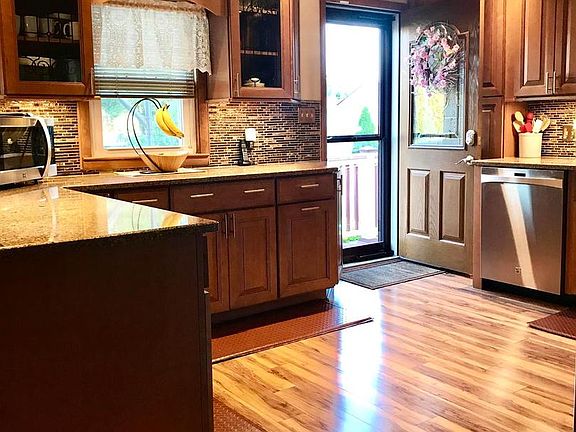 Beautiful 3BR, 2BA home with updates galore. Move right in. Fabulous new kitchen, two newly updated full bathrooms, great open floor plan, and sun porch you will be sure to fall in love with. See the kitchen sparkle under the recessed LED lighting, featuring custom-built 42" maple cabinets convenient with slide-out drawers, built-in lazy susans, and utensil trays, select quartz counter tops and breakfast nook, stunning stone and glass back splash, a stainless steel sink equipped with high arch touch faucet, and a pro's 5-burner gas stove with temperature probe and swing arm pot filler. Both kitchen and dining room sit on floating laminate floor with natural hardwood appeal. Kitchen also leads out to Trex deck, steps, and railings, to a 4-car driveway. Back inside, the two large front bay windows create a great open flow, through the living room, right back to the sun porch sanctuary. Home offers efficient 2-zone HVAC, and ceiling fans throughout both floors. The full baths on both floors have both been recently updated, and upstairs one offers a tiled shower, and beautiful country vanity. Fenced in backyard with shed, plus a full basement waiting to be finished. Convenient to 73, 38, and 295. This is new listing you don't want to miss.