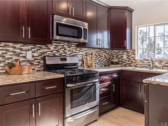 This Brand New 2 Bedroom Townhouse is light and bright with many windows, 2 patios and laminate flooring throughout. Kitchen features Frigidaire stainless steel gas range, dishwasher and microwave, dual stainless steel sink, granite counter tops and beautiful soft-closing dark wood cabinetry with crown molding. Master bedroom has a private balcony, walk in closet, ceiling fan, dual sinks and a large stall shower with tile surround and inlay. Secondary bedroom has its own private bathroom. This floor plan has a separate dining room and living room. Living room has a nice size balcony. 2 car garage with direct access and tankless hot water heater Common area includes a BBQ area and 17 guest parking spaces.**Photos are of model unit**, ***ask about seller incentives***