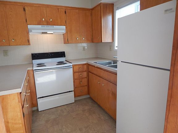 Updated 2 bedroom 1 bath downstairs apartment with off-street parking. New flooring in living room and carpet in bedrooms. New paint throughout. Kitchen with range and fridge. Private patio off living room. On-site coin laundry. W,S,G Paid! Close to fair grounds and shopping. SQFT is approx. Water, sewer, garbage paid