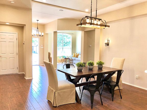 High ceilingsBeautiful backyard oasisSmart open floorplanLarge dining roomWood tile floorSplit bedroomsNatural light
