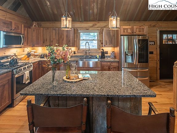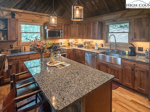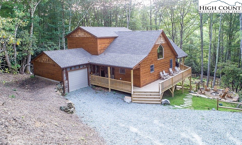 This is a new, turn-key, income-producing property. This is offered fully furnished with a rental history thru Evolve rentals. The home was built by the local contractor in 2021, and the workmanship is totally amazing! The huge, vaulted ceiling, with old barn roof metal, is a great addition. Also included is a grill and hot tub located on the back deck. If you would like to you can take a stroll down to Laurel Creek at the edge of the backyard and toss in a line. Only 5 miles to Banner Elk, and 6 miles to Valle Crucis, this is a must-see home for the investor or the fulltime resident. Signature Ridge is nestled in the Cool Springs community with a common area that includes a Koi Pond and trout fishing in Laurel Creek. You do not want to miss this home!