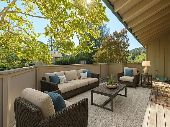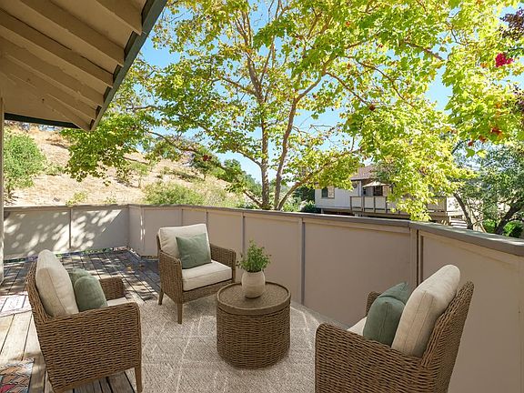 Welcome to your peaceful penthouse condo in Novato! This end-unit condo offers privacy, abundant light, and tranquil views of open space that will never be built on. Thoughtfully maintained and move-in ready, it features two bedrooms, one bath, and a private deck perfect for morning coffee or evening relaxation. Upgrades include Brazilian Jakoba-style floors, gold-flecked Brazilian granite counters, and hand-painted Portuguese tile backsplash on kitchen walls. The kitchen also includes double stainless sink, stainless refrigerator and stove, and an oak-finish ceiling fan in the dining area that complements the home's warm, natural aesthetic with a hand-painted mural by a notable artist. Enjoy plantation shutters for year-round comfort and a bathroom accented with mosaic tiles featuring imported designer pieces from Italy, Greece, Portugal, and Africa. With two entryways, ample storage, a community pool, hot tub, and 2-car tandem carport (plus guest parking), this serene home offers easy access to shopping, dining, and easy access to Hwy 101 & 37.