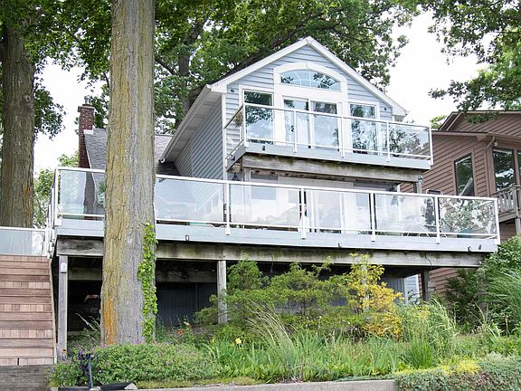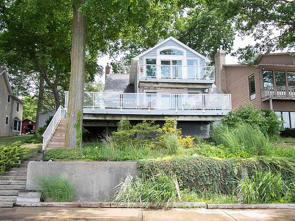 WELCOME HOME to your new oasis on Sylvan Lake's lower basin, with 75 feet of stone/sand LAKE FRONT and a newer 7-year-old seawall. Lovingly maintained for nearly 30 years by the same family, this home has been thoroughly enjoyed and remodeled over the years. Walk up the stone pathway to the stunning stained-glass front door and find one of the best views of Sylvan Lake waiting for you every time you step inside. On the main level, you will find the open concept floor plan with bright, large windows and original hickory woodworking throughout along with a beautiful stone fireplace, a classy kitchen with granite countertops and built in wine bottle shelving, walk-in pantry, full bathroom and a laundry room. Upstairs you will find all 3 bedrooms along with a newly redone full bath (4 years ago) with granite countertops. The expansive primary bedroom also faces the lake with unbeatable views, and a walk out balcony patio. The balcony and lower deck are all built with strong tempered glass, aluminum and an IPE Tropical Hardwood decking. The roof is only 6 years young, and the house also features a whole home water filtration system. Sylvan Lake is a 669 Acre, all season Ski Lake great for boating, fishing, ice fishing, skiing, tubing, swimming and much more! This property boasts nearly half an acre of land and a large, 3 car detached garage and a 2nd additional 1.5 car garage so you'll have plenty of space for all your water toys! This is one that lake lovers do not want to miss out on (and they are including their PIER/DOCK!)- you simply cannot beat these views!