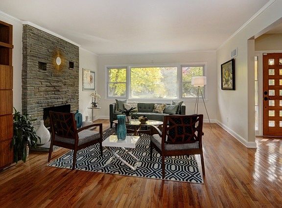 MID-CENTURY MODERN RANCH W/Bright open floor plan is beautifully renovated w/ quality finishes. 2 new kitchens, 3 fulls baths, 4 spacious bedrooms, finished basement w/ rec room & fireplace! Spacious car garage w/ openers, beautiful wood floors on first floor, top of the line laminated floors on lower level and updated lighting throughout the entire house. 2 zone CAC & heating and much more! -Taxes have been lowered through seller's appeal. $339,900