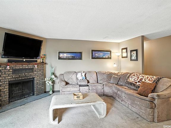 NOT YOUR AVERAGE CONDO !!! These don't come up often.... Only the Top Floor has only one other neighbour--AND --Conveniently located across the hall is a small amenities room, and a 600 sq ft (huge) top-floor sun drenched balcony space, providing an excellent venue for socializing or hosting small gatherings. Owner has enjoyed this unit for 17 years! The building consists of only eight units, ensuring a quiet and private atmosphere.Features living room with wood burning fireplace and a patio door to private deck overlooking green lawn space ...Seller states lots of natural light from east sunrises and west sunsets..! Two large bedrooms, laundry in suite,exclusive parking stall plus visitor parking. Air conditioner is in main living area and separate thermostats in each room to control your heat. Low $300 condo fee.PETS allowed with restrictions.Perfect for U of S students with DIRECT BUS TO CAMPUS! or anyone wanting a very quiet peaceful private setting! NOTE: possession can be immediate!