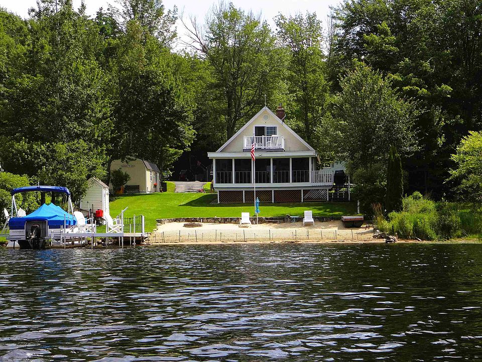 WATERFRONT! Beautiful 3 bdrm/1.5 bath home on Locke Lake. This year round Cape has its own large sandy beach & boat dock. Amazing views of sunsets over lake from the large screened porch and Balcany. First floor bdrm, master bdrm w/balcony and living room w/huge brick fireplace/woodstove. Most furniture negotiable Locke Lake amenities are another Bonus with 2 inground pools, tennis, playground, 9 beaches with access to Half Moon Lake. Lots of Negotiables! Winter Activities, Snowmobiling, and Ice fishing! And so Much More! Prequalified Required and Assisted Showings by Appointment only