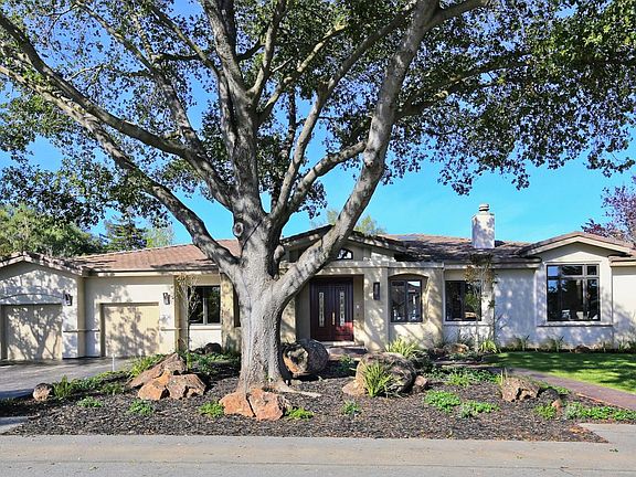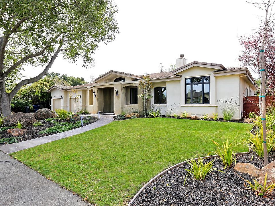 Completely remodeled home in sought-after North Los Altos. Mosaic flooring, crown moldings, and striking ceiling treatments. Spacious living room with carved stone fireplace. Library/office with floor-to-ceiling custom shelving. Incredible chef's kitchen opens to family room. Beautiful grounds with water features, raised vegetable beds, arbor-covered patio, and level lawn.