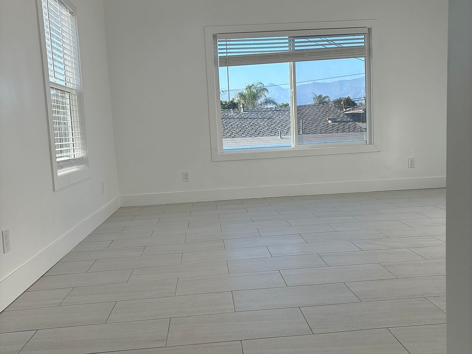Sorry, no dogs allowed (one cat is okay), and there is a 2-person maximum occupancy. This a fully remodeled 1 bedroom, 1 bathroom apartment on a quiet residential street in Alhambra. This unique property is a self-standing apartment with no other neighboring apartments and no shared walls. The only other neighbor is a single house in the front. This second-floor apartment features privacy and expansive panoramic views of the San Gabriel Mountains. Large, energy-efficient windows surround you allowing views and ambient light from all four directions, and the energy-efficient central air & heat system will keep you comfortable. A convenient and private laundry room with your own washer & dryer is just downstairs. Absolutely everything is brand new. Every floor, wall, ceiling, countertop, door, window, faucet, light fixture is new -- there is not a single inch inside that is not brand new. Starting with the electrical wiring all the way through to the custom quartz-top kitchen, this is practically a brand new apartment. The remodeled items include: Custom-designed solid wood kitchen cabinets Quartz countertops Stainless steel stove/oven Stainless steel sink with brushed nickel faucet Recessed lighting Porcelain tile floors throughout Private laundry room with washer & dryer Central air and heat Double-paned insulated windows Vertical shades and curtains Bath vanity & custom glass shower Mirrored closet in bedroom Electrical panel and all wiring, outlets, and switches New exterior stucco and paint Aside from the actual apartment, the next best thing about this property is it's location. It's on a very nice, residential street, and close to all the dining and shopping options Alhambra has to offer.