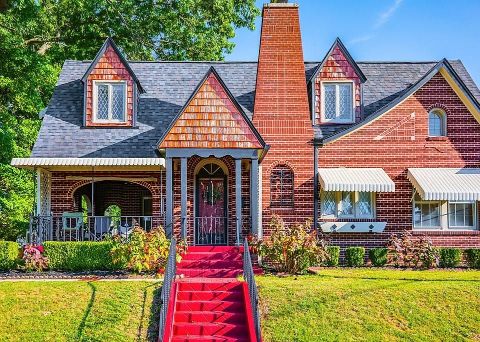 Vintage fireplaceClassic gabled roofTraditional built-insRich brick facadeOriginal hardwood floorsNatural light