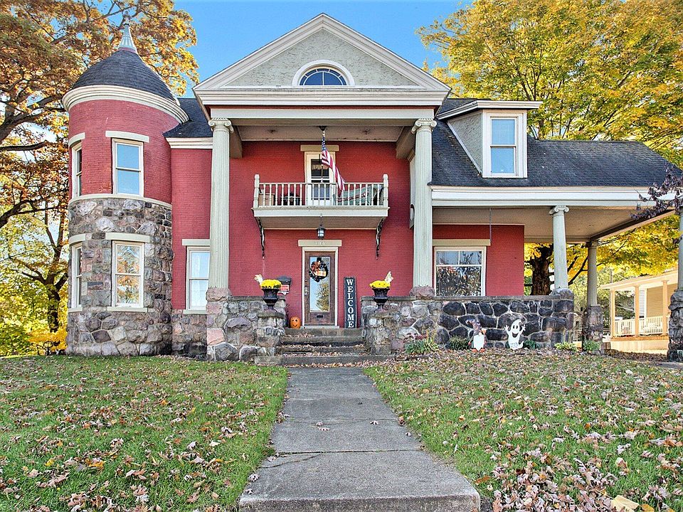The red stately VICTORIAN offers appealing bay windows, a welcoming expansive front porch, a charming covered side porch with porch swing for those warm summer nights, a second floor balcony, breathtaking woodwork with huge oak pocket doors, and hardwood floors (including Brazilian cherry wood floors). It is beautifully decorated while accentuating the old world charm thats its 1870 architecture offers while still providing upgrades and amenities for modern living. In the heart of the city the home overlooks Scidmore Park where the 3 rivers meet. The home has a modern updated kitchen, a new handicap accessible full bath on the main floor, a main floor bedroom, and a main floor laundry. The lovely grand staircase leads to the 4 spacious upstairs bedrooms & 2 full baths including an extra room that is a walk in closet and vanity. There is a back staircase leading to the kitchen and even a spacious full attic to finish into your hobby or art area. There is ample storage in the full basement and the home sits on a large partially treed lot as well as 2 extra lots and has a new 40 x 16 shed for additional storage. This is a well kept turn of the century family home, or could possibly be a home office or bed and breakfast . Sellers have replaced most of the plumbing, fully insulated the attic, & added the main floor bath.
