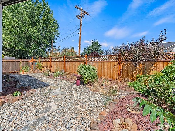 Great starter home or investment property with 3 bedrooms and 2 full bathrooms is located just north of downtown Ellensburg and CWU. Home features a compact yet efficient floor plan with open living area. Primary has an attached full bathroom + 2 closets! 2 additional rooms are large enough to accommodate queen beds perfect for a roommate, guest bedroom or office space. Attached single car garage has a storage room/work space at the back with a 220 outlet. The front yard is fenced for privacy and has a low maintenance native plant and rock garden. Fenced back yard has a spacious yard, mature trees and raised garden beds. Home is equipped with wall heat throughout and a wall unit AC unit in the main area of the home. Appliances included.