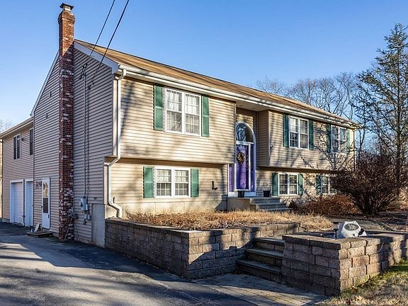 Privately located minutes away from Wallum Lake! This 3 bed 2 bath split is waiting for its new owners. Over 2 acres, with ample parking, an enormous backyard, and fenced in dog area. The main level offers an open and sunny floor plan boasting a giant bonus room with fireplace. High-ceilinged kitchen and large dining room for all your holiday events. Finished basement featuring: office area with bar, mud room, living area and two bonus rooms! Spacious deck for entertaining with four sliding doors providing access to the bonus room. Established landscaping with stone wall, brick walkway and storage shed. Oversized two car garage providing ample space for parking vehicles and extra storage. Close to full recreational lake, water ski, power boat, canoe, swim and ice fish only a short distance from this lovely home. Newer Furnace (2023) and Water Heater (2021).